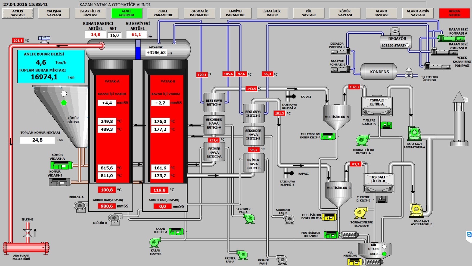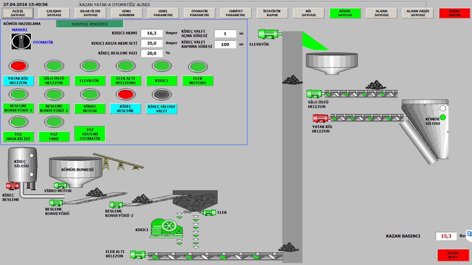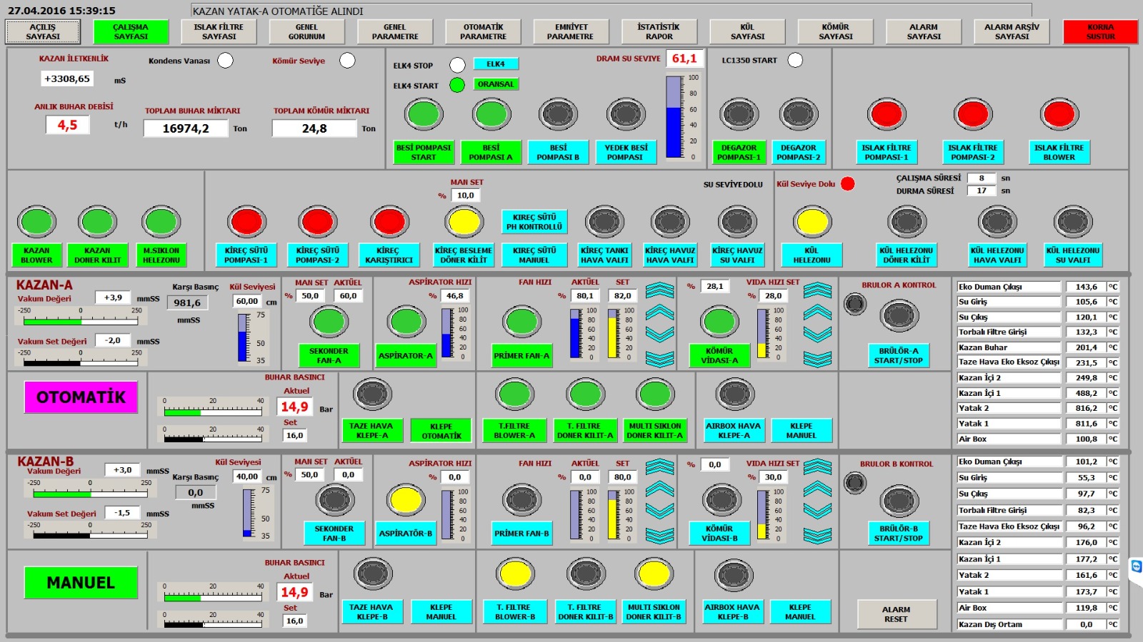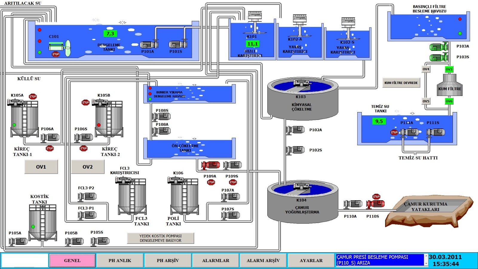 Tüm tesis scada üzerinden tam otomatik veya manuel olarak kontrol edilebilir.